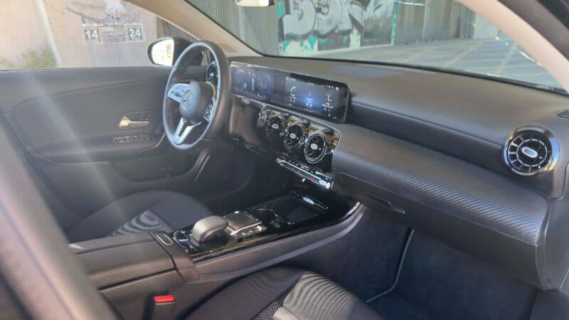 El interior del Clase A marca tendencia con su sistema MBUX con pantallas panorámicas, iluminación ambiental con 64 colores, climatización automática y un paquete de seguridad que incluye frenada de emergencia, detector de fatiga y control de carril. Es, sin duda, el compacto más tecnológico del mercado.